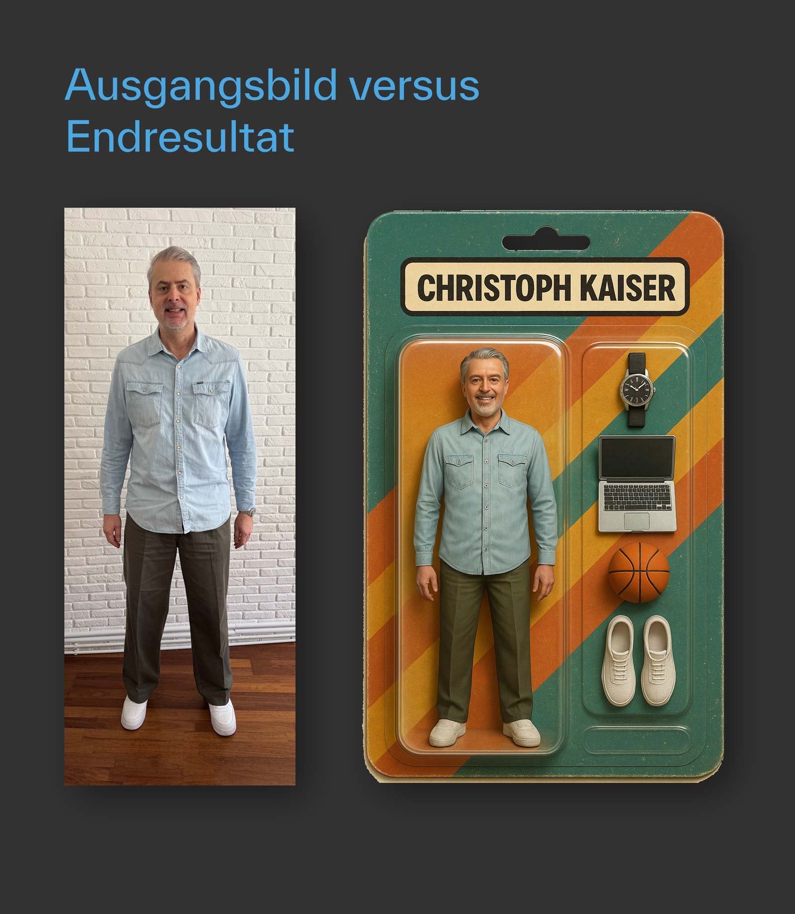 Aktuell werden die Social Media Kanäle mit selbstgemachen Actionfiguren geflutet. Wir haben den Selbstversuch mit unserem Geschäftsführer Christoph Kaiser gemacht und ihn mit ChatGPT kurzerhand in einen coolen Plastikhelden verwandelt.