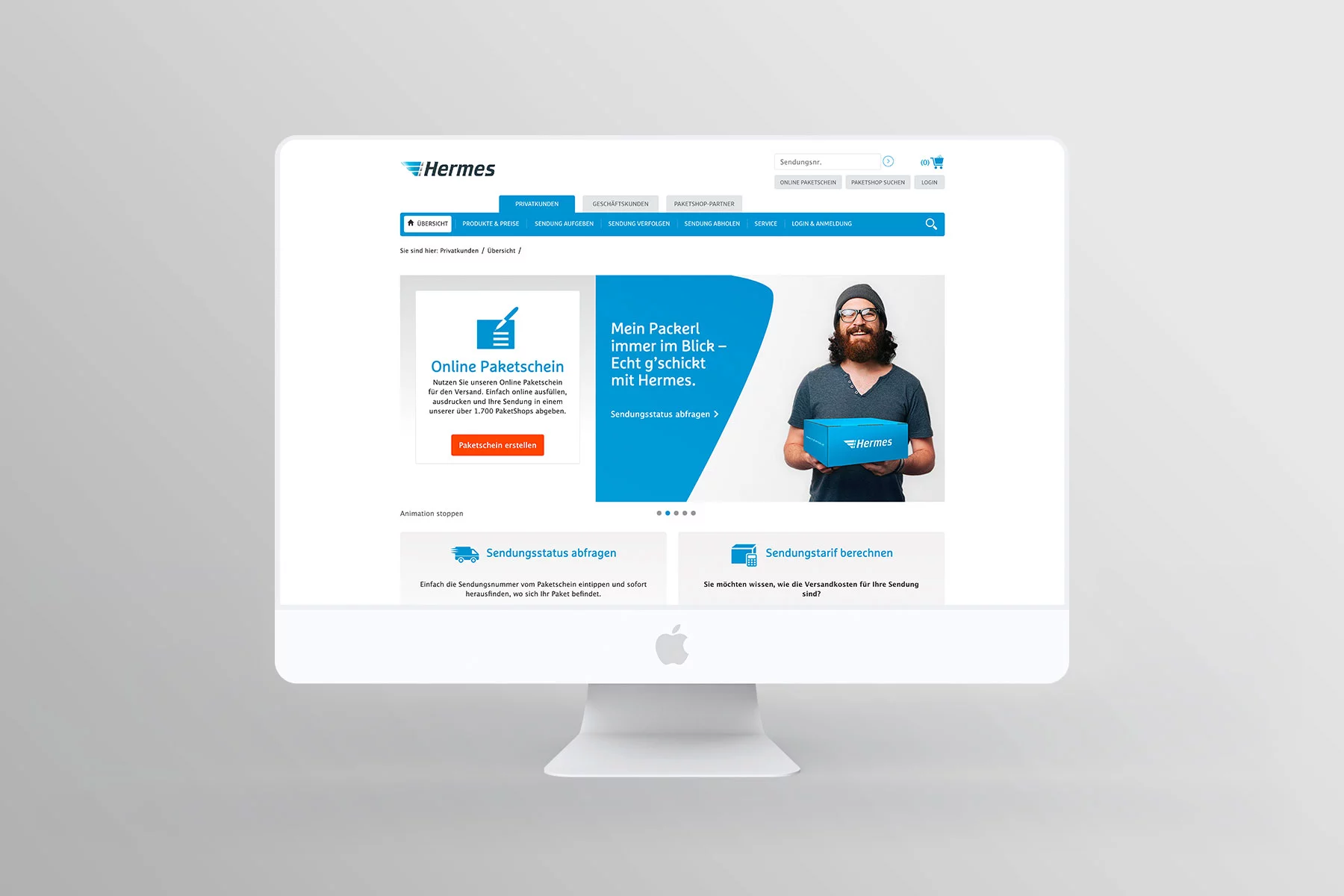 Das Portal des Paketdienstleisters Hermes wird monatlich einige hunderttausendmal aufgerufen und ist eine wichtige Unterstützung für das Paketgeschäft, da es über viele Funktionen wie beispielsweise der Generierung von Paketscheinen, Sendungs-Tracking oder Filialsuche verfügt.