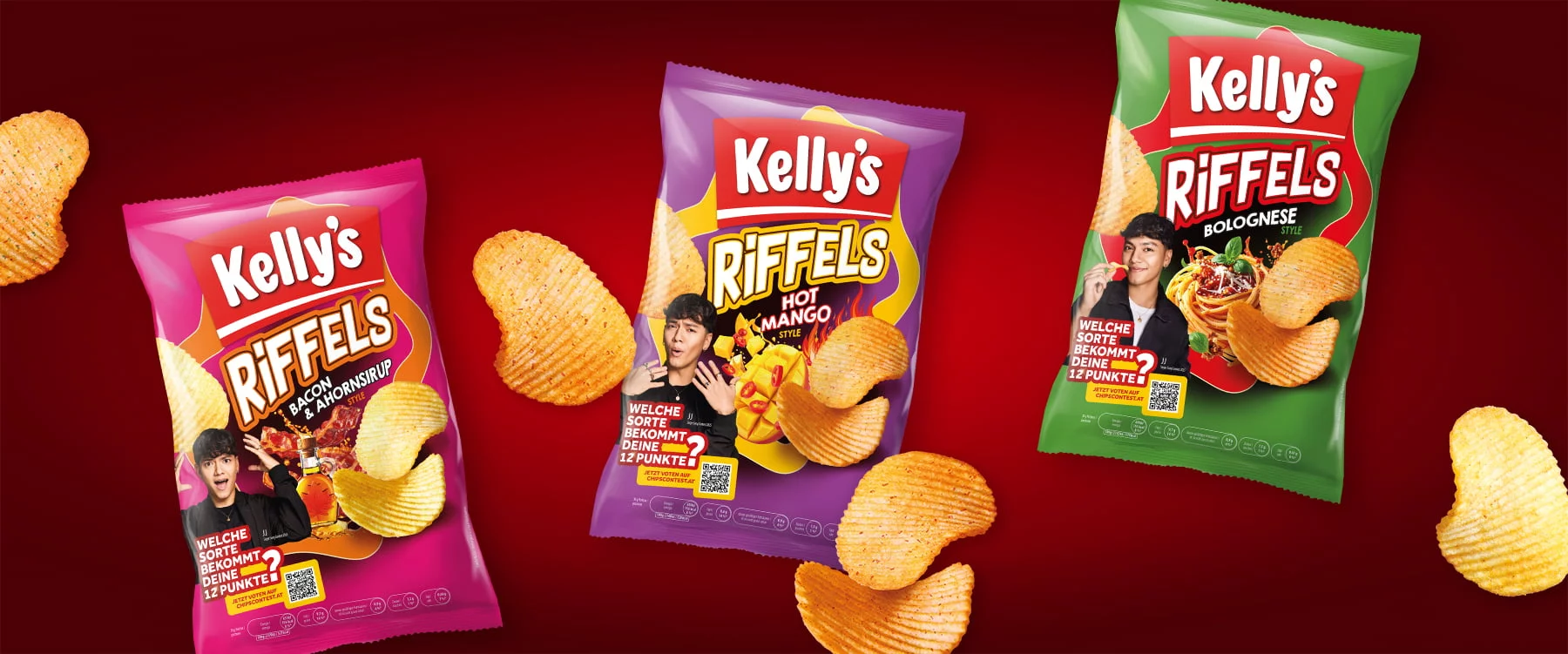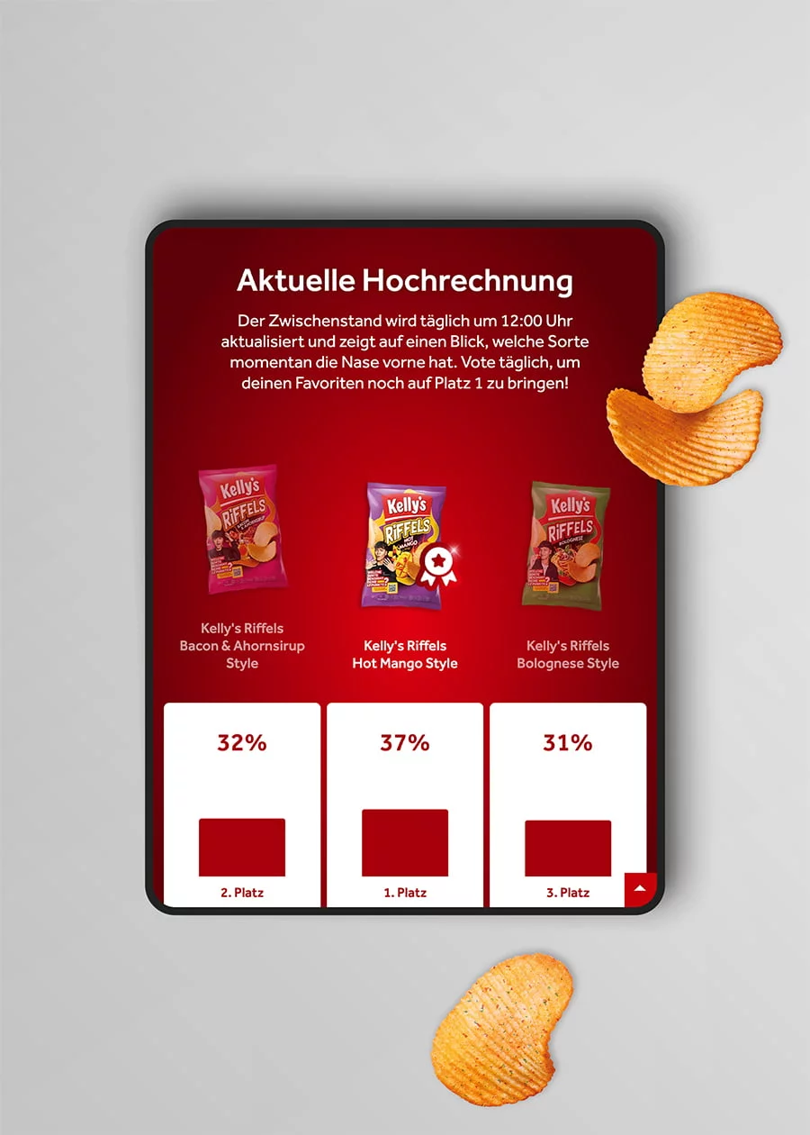 Zur Auswahl stehen drei auĂergewöhnliche Geschmacksrichtungen, die fĂŒr kurze Zeit im österreichischen Handel verfĂŒgbar sind: Hot Mango Style, Bacon Ahornsirup Style oder Bolognese Style. Die aktuelle Hochrechnung des Gewinners wird tĂ€glich um 12 Uhr auf der Webseite bekanntgegeben. Welche Sorte holt sich dieses Jahr den 1. Platz?