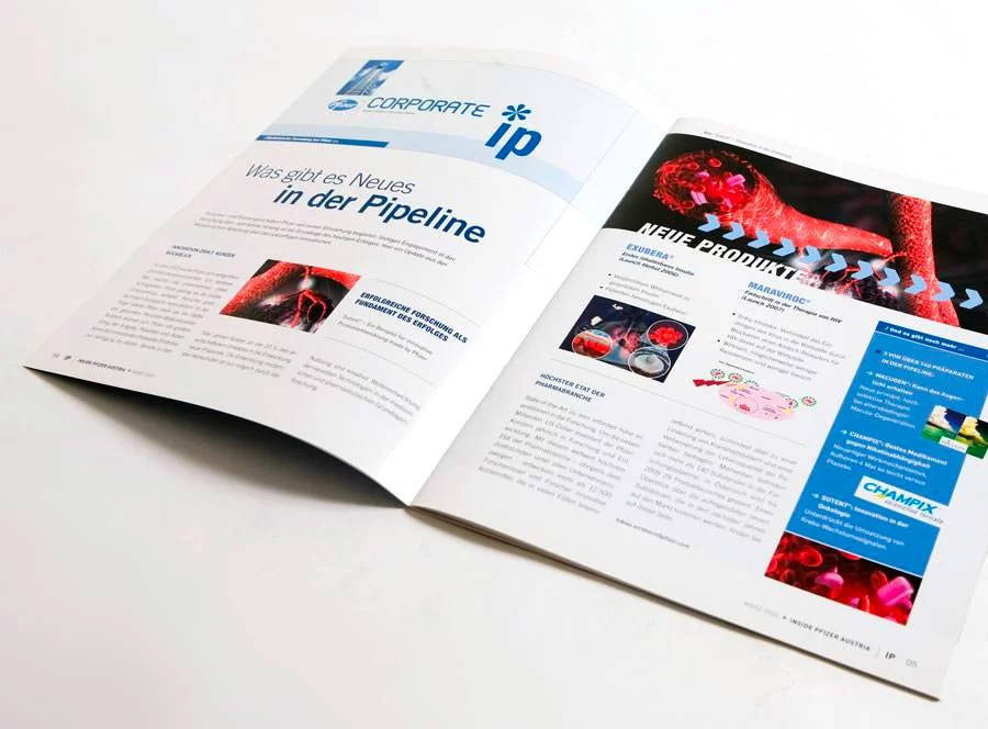 Das viermal im Jahr erscheinende Magazin informierte die rund 300 Mitarbeiter der österreichischen Konzern-Niederlassung ĂŒber alle Neuigkeiten rund um Pfizer. Es erfreute sich innerhalb der Belegschaft einer hohen Beliebtheit und wurde in einer anonymen Meinungsumfrage sehr positiv bewertet.